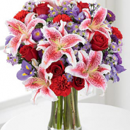 百合2支,康乃馨1扎,红玫瑰6